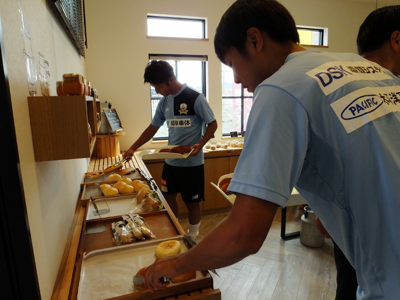 サイン会後、選手たちは、リビングスタジオ・ラクラシエに昨年オープンした『atoriパン工房』にお邪魔しました。焼きあがったばかりのパンの良い香りがする店内で、選手は美味しそうなパンを迷いながら選んでいました。