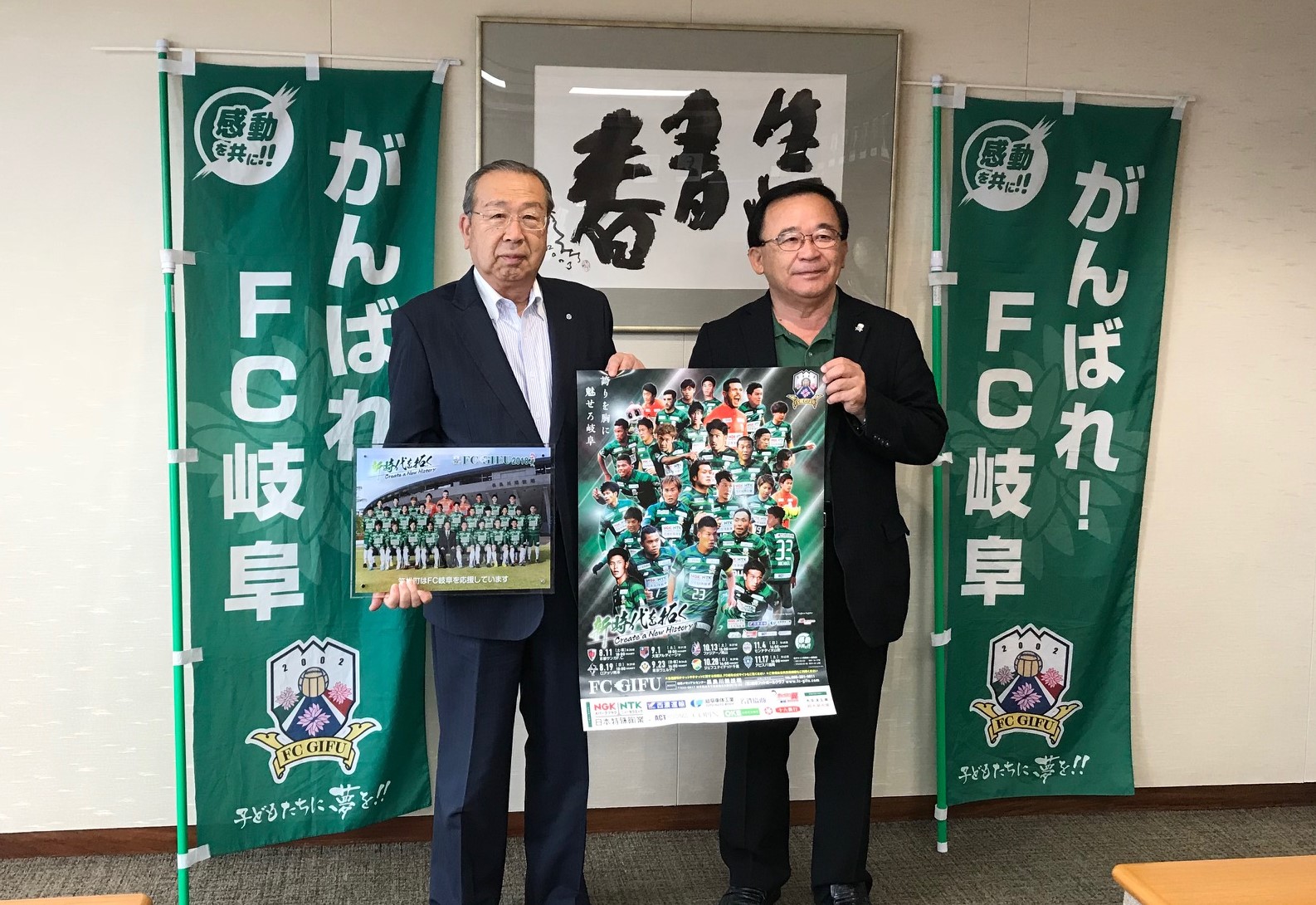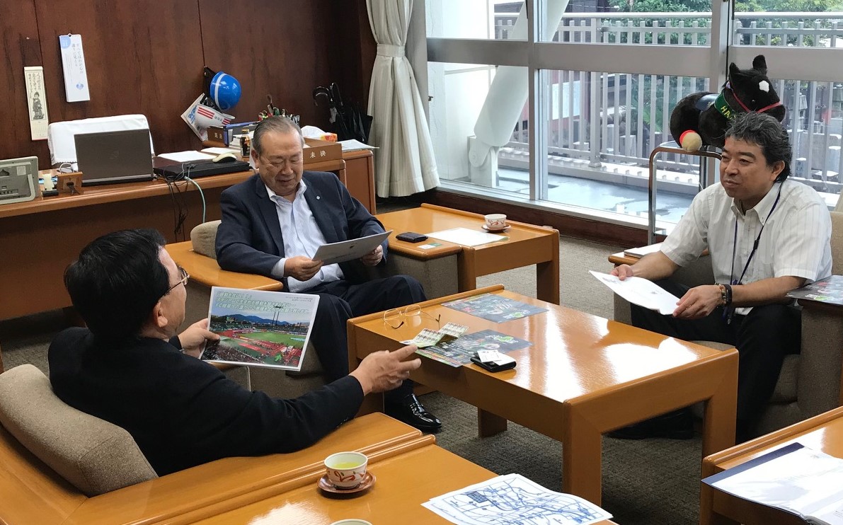 10月28日(日)ジェフユナイテッド千葉戦(14時キックオフ) の「笠松町ホームタウンデー」開催にあたり、9月21日(金)笠松町役場にて、宮田 博之社長が、廣江 正明 笠松町長を表敬訪問させて頂きました。