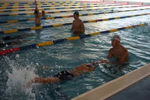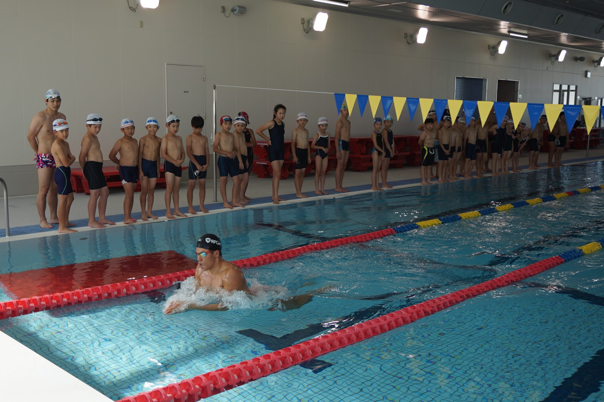 それぞれコースに分かれて泳ぎながら、小長谷選手や糸井コーチからアドバイスを貰っていました。子どもたちも最後まで一生懸命に泳ぐ姿が見られ、終盤には泳ぎが変わってきたように見えました。