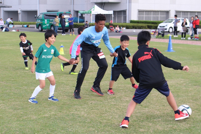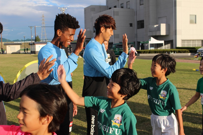 FC岐阜からは全 山海選手、ミシャエル選手が参加し、子ども達と一緒にサッカーを楽しみました。