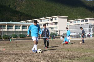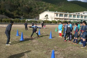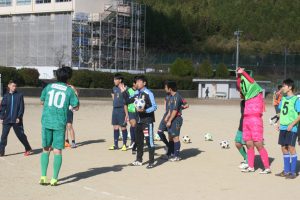 三ヶ月コーチ、岩崎コーチのグループでは、コーンを使った動きのトレーニングからパス&コントロール、シュート練習と行っていきました。いろいろな学校の選手が集まる中、次第にコミュニケーションが取れるようになり、楽しんでトレーニングをしている様子が見られました。