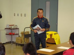 最初に恵那市サッカー連盟副会長でFC ENAの進藤幸司様より、ご挨拶をいただき、講習会がスタートしました。