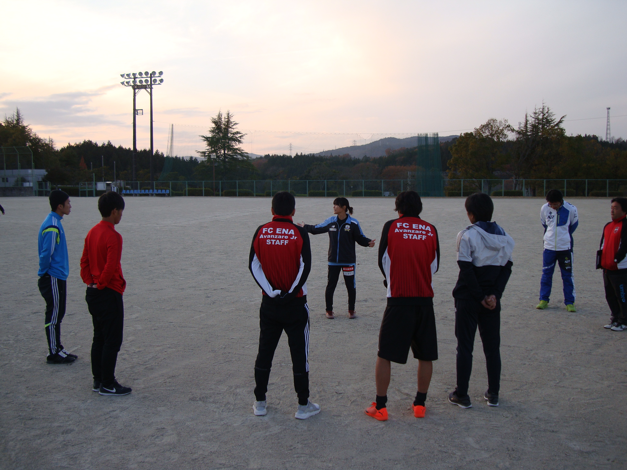 12月2日(日)恵那市体育連盟様主催による「FC岐阜指導者講習会」をまきがね公園(恵那市)にて開催させていただき、指導者と中学生の選手が30名参加しました。