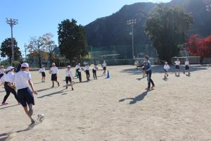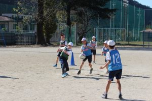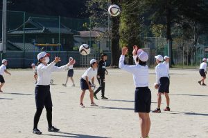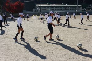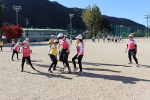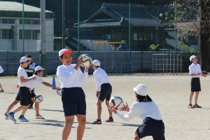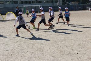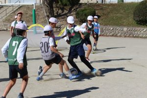 ゲームでは男子も女子も仲間と協力し一生懸命ボールを追いかけました。女子はルールも理解し判断しながら行っていました。