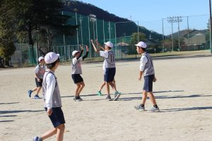 次のクラスでは2人で同時にボールを投げたり、チームになって「せーの!」の掛け声で一斉にボールを投げてキャッチしたり友達と呼吸を合わせて取り組みました。