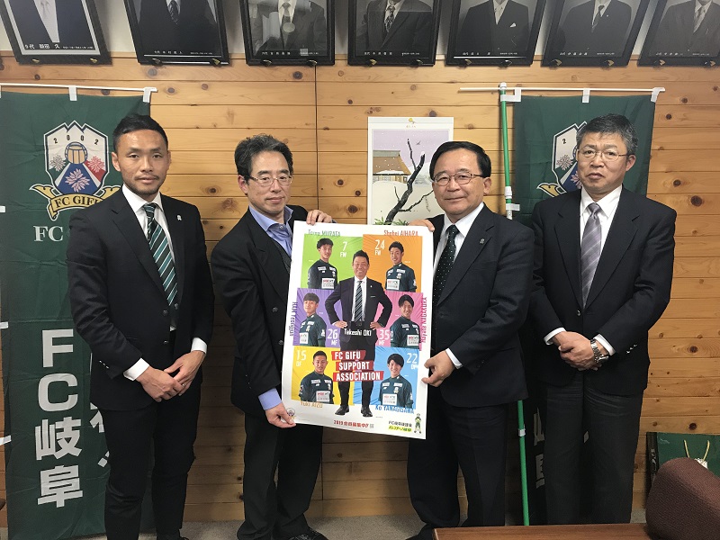 宮田社長からは、2019シーズンのクラブの取り組みと、トップチームの開幕戦勝利をご報告させて頂きました。そして、ファジアーノ岡山戦での東白川村ホームタウンデーに際し、抽選会のプレゼントや公式マスコットキャラクターの「つっちー&のこりん」も来場いただく等、様々な盛り上げ策を講じていただけることに対し、御礼を申し上げました。
