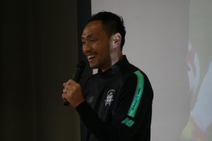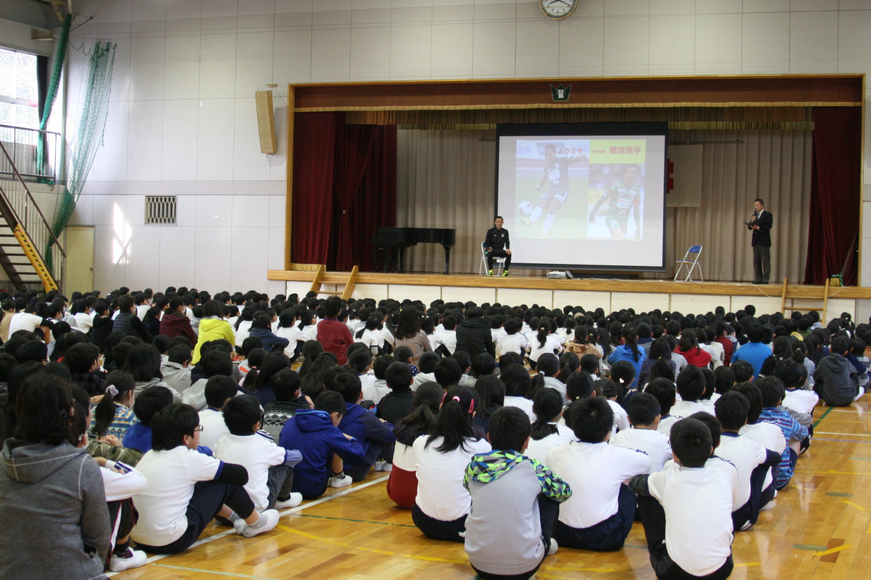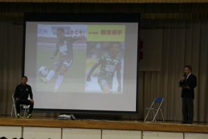 難波クラブアンバサダーの講演では、子どもたちに向けてプロサッカー選手になるまでの苦労やプロサッカー選手としての生活、そしてクラブアンバサダーの仕事についてなど、わかりやすく話しました。