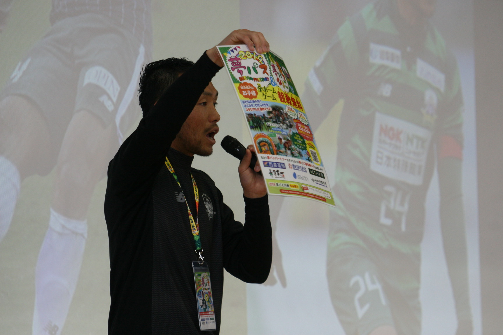 最後に、岐阜県内の小学生は全試合観戦ができる「夢パス」について説明し、スタジアムで「夢パス」を作り、FC岐阜を応援してほしいと呼びかけました。
