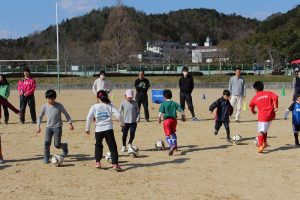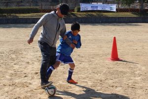 幼児の部はFC岐阜サッカースクールの森田コーチ、小学生の部は益山コーチが指導を行いました。