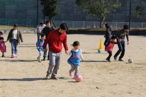 サッカー教室には、小学校6年生以下の子どもたちと保護者の30組が参加しました!