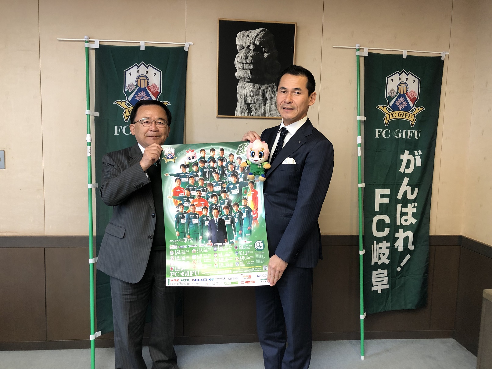 (写真左から、FC岐阜 宮田 博之 社長、尾関 健治 関市長)