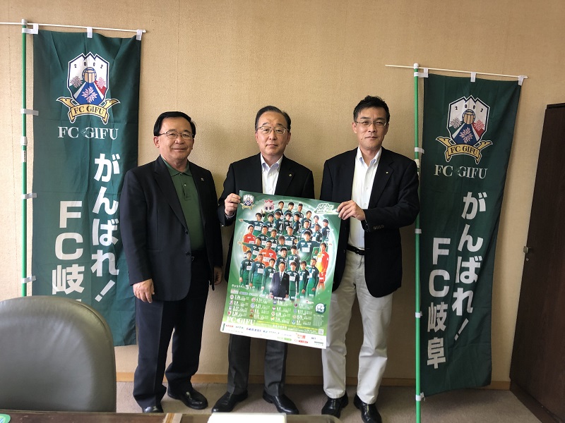 (写真左からFC岐阜 宮田 博之 社長、宮浦 哲也 専務理事、角田 誠治 事務局長)