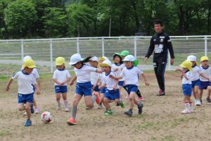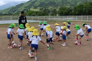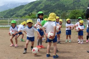 5月20日(月)白川村立白川保育園にて、年長・年中24名を対象にFC岐阜サッカー教室を実施させていただきました。