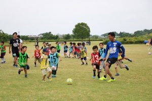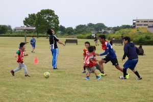 川西選手にゴールを決められまいと子ども達は邪魔をしますが、最後は押し込まれゴールとなり悔しがる姿もありました。