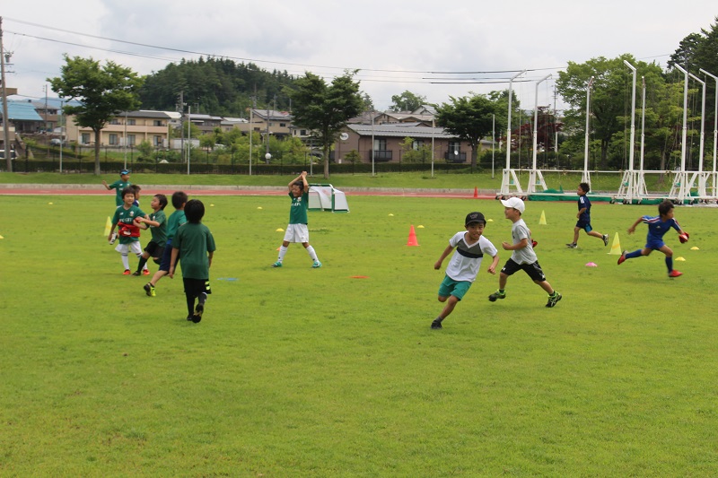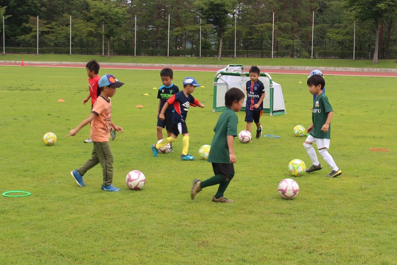 インステップキックやドリブルなどサッカーの基礎を学びました。