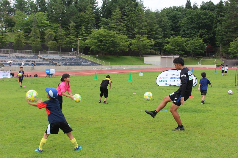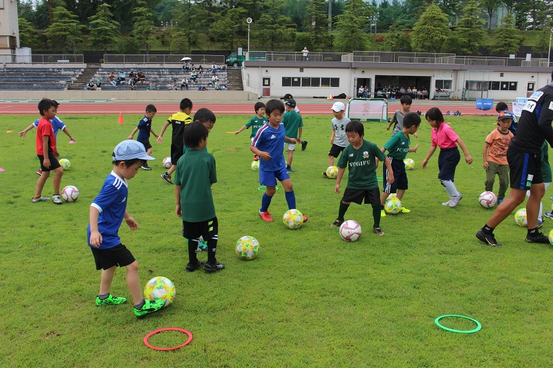 7月6日(土)高山市の中山公園陸上競技場にて、「FC岐阜こどもサッカー教室㏌たかやま」を開催いたしました。