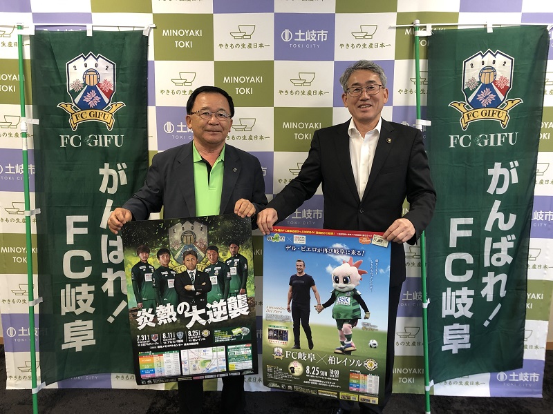 8月25日(日)柏レイソル戦(18時キックオフ) の「土岐市ホームタウンデー」開催にあたり、8月1日(木)土岐市役所にて、宮田 博之 社長が、加藤 淳司 土岐市長を表敬訪問させて頂きました。