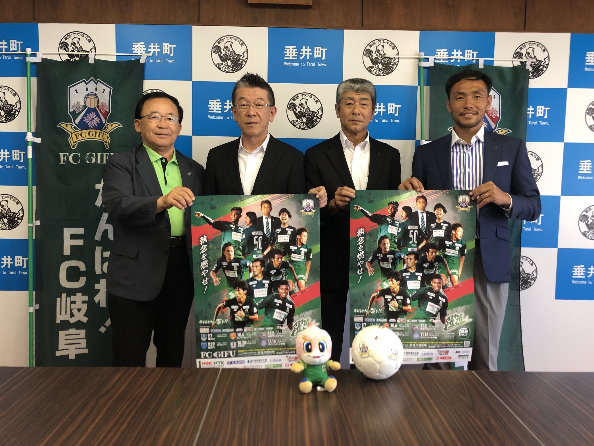 10月6日(日)レノファ山口FC戦(19時キックオフ) の「垂井町ホームタウンデー」開催にあたり、9月10日(火)垂井町役場にて、FC岐阜 宮田 博之 社長と難波 宏明 クラブアンバサダーが、早野 博文 垂井町長を表敬訪問させて頂きました。