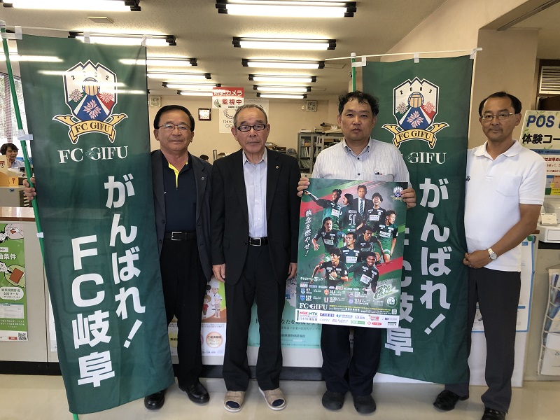 (写真左から、FC岐阜 宮田 博之 社長、清水 政男 専務理事、渡辺 憲治 事務局長、FC岐阜 戸部 久史 営業グループリーダー)