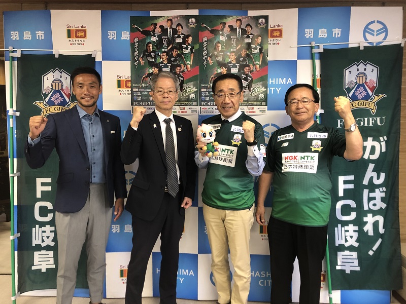 10月6日(日)レノファ山口FC戦(19時キックオフ) の「羽島市ホームタウンデー」開催にあたり、9月13日(金)羽島市役所にて、FC岐阜 宮田 博之 社長と難波 宏明 クラブアンバサダーが、松井 聡 羽島市長を表敬訪問させて頂きました。