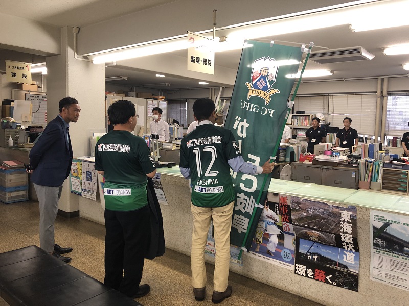 宮田社長からは、トップチームの現状報告と降格圏脱出に向けてをご報告させて頂くとともに、FC岐阜応援隊のSKE48やVTuberの蹴球夢、チアチームのGGGなど、クラブ独自のの様々な取り組みもお伝えさせて頂きました。そして、レノファ山口FC戦での羽島市ホームタウンデーに際し、来場者プレゼントやイベントなど、様々な盛り上げ策を講じて頂けることに御礼を申し上げるとともに、「感動をともにチケット」で羽島市民500名様を無料でご招待させていただき、レノファ山口FC戦に臨む選手を多くのお客様で盛り上げて頂けるよう、松井市長にお願い申し上げました。