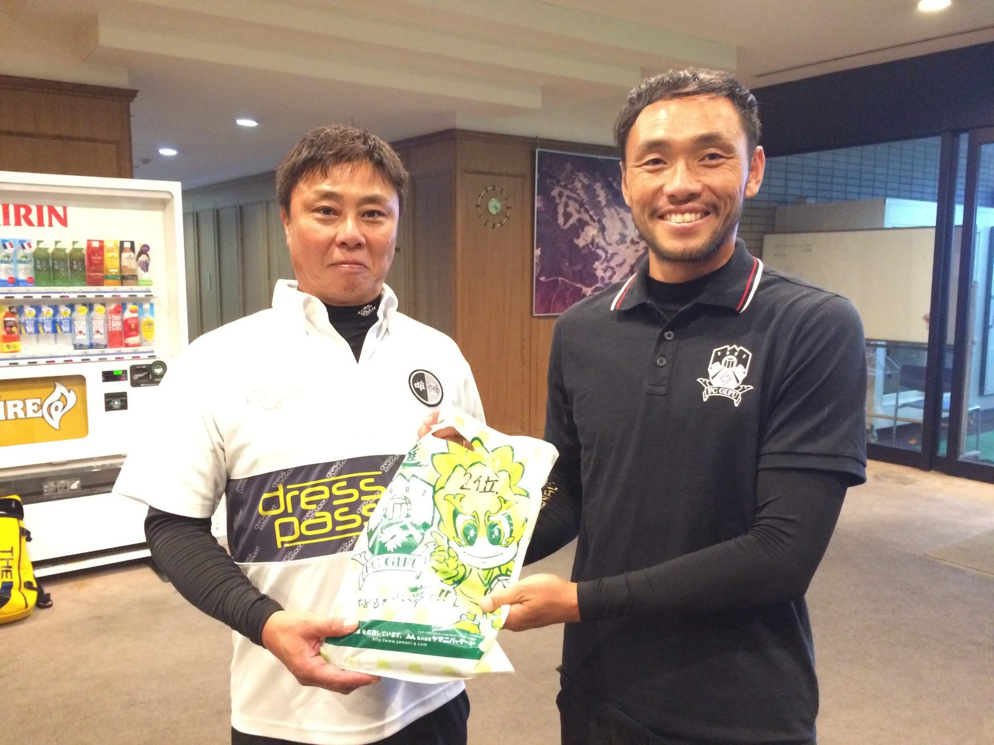 幸い天候も崩れず、17時頃に最終組も終了し、表彰式を行いました。難波アンバサダーから、FC岐阜グッズの賞品が贈呈されました。