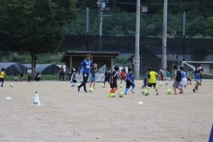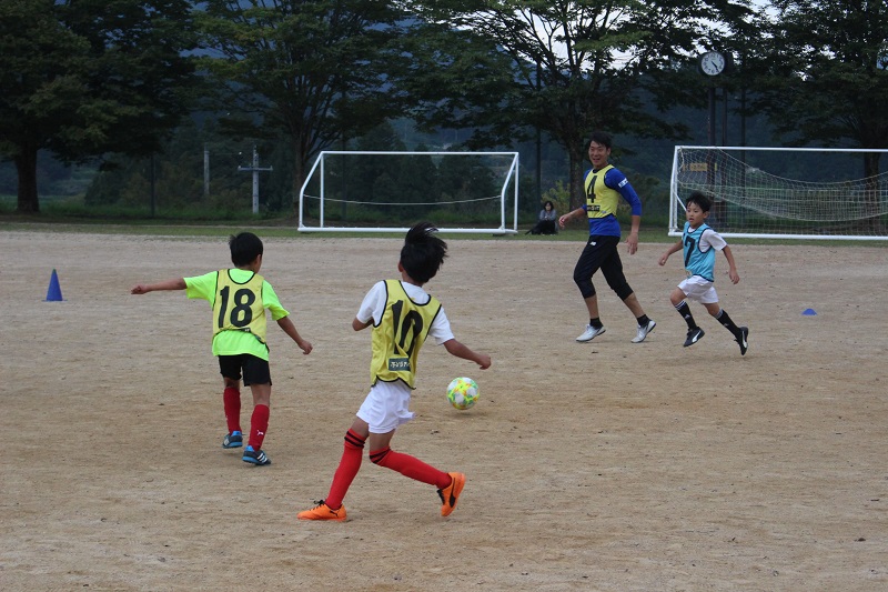 9月28日(土)高山市にある、大八グラウンドにて高山市主催による「高山市交流サッカー教室」が開催され、高山市内に住む小学校1年生~6年生の子どもたち45人が参加しました。