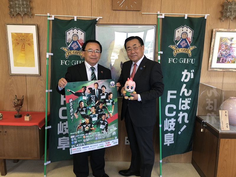11月16日(土)ヴァンフォーレ甲府戦(2019シーズンホーム最終戦) の「瑞浪市ホームタウンデー」開催にあたり、11月1日(金)瑞浪市役所にて、FC岐阜 宮田 博之 社長が、水野 光二 瑞浪市長を表敬訪問させて頂きました。