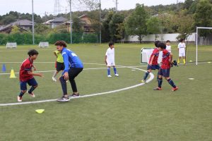 その後、子ども達も実際にボールを蹴って練習に取組みました。