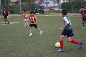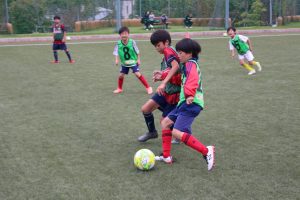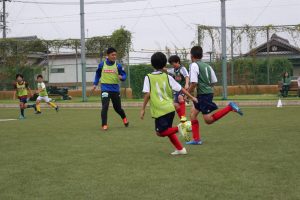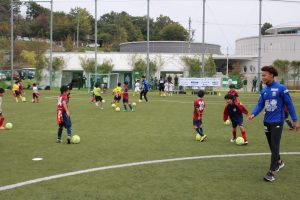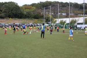 最後はミニゲームを実施。普段は別々のチームの子ども達が力を合わせて勝利を目指して一生懸命ボールを追いかけていました。