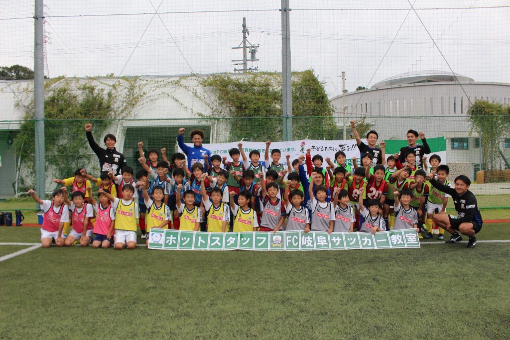 11月3日(日・祝)に多治見市にある「とうしん学びの丘エール」にてFC岐阜トップパートナーであるホットスタッフ岐阜グループ様主催のサッカー教室が開催されました。