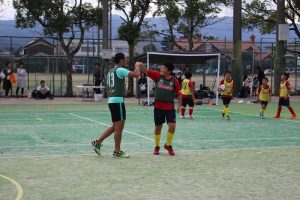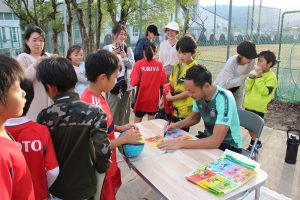 シュートでは難波クラブアンバサダーのデモンストレーションを観て、アドバイスをもらいながら強いキックの練習をしました。