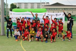 キックターゲットでは150点の満点をとった少年に全選手サイン入りTシャツをプレゼント!
