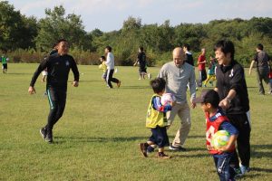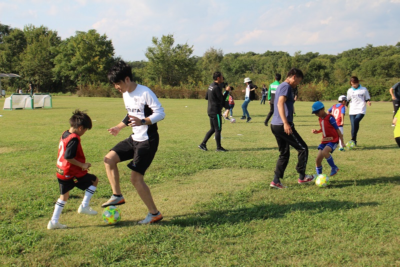 サッカー教室は、親子で協力しながら出来るメニューを中心に楽しく行いました。