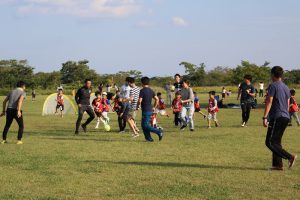 子どもvs親でボール集めをしました。手加減なしで全てのチームで親が勝ちました。