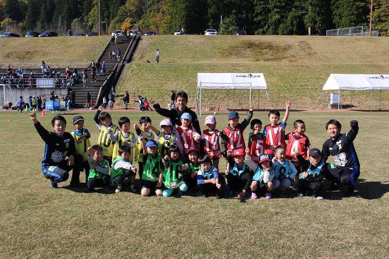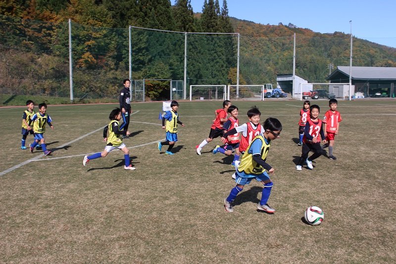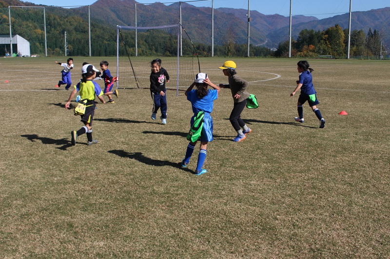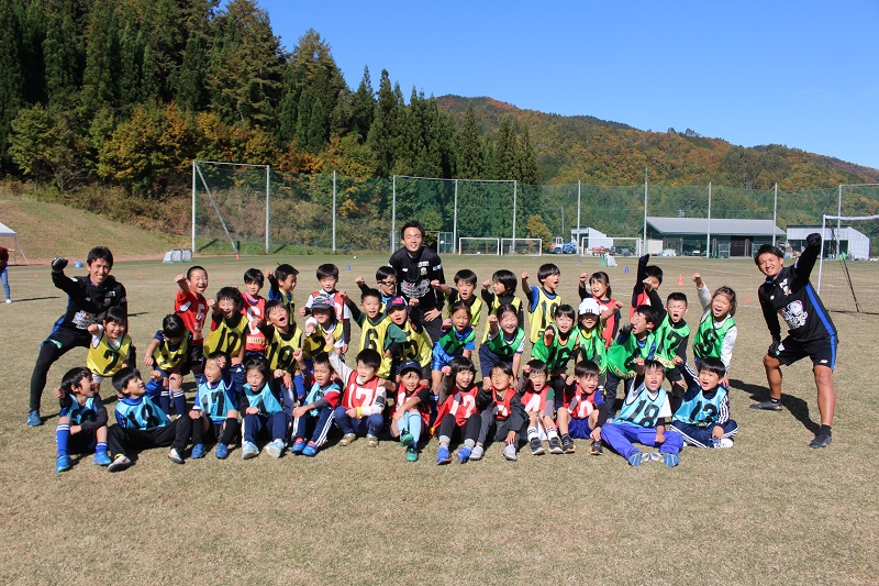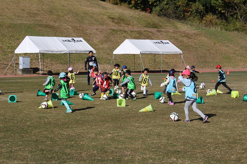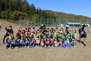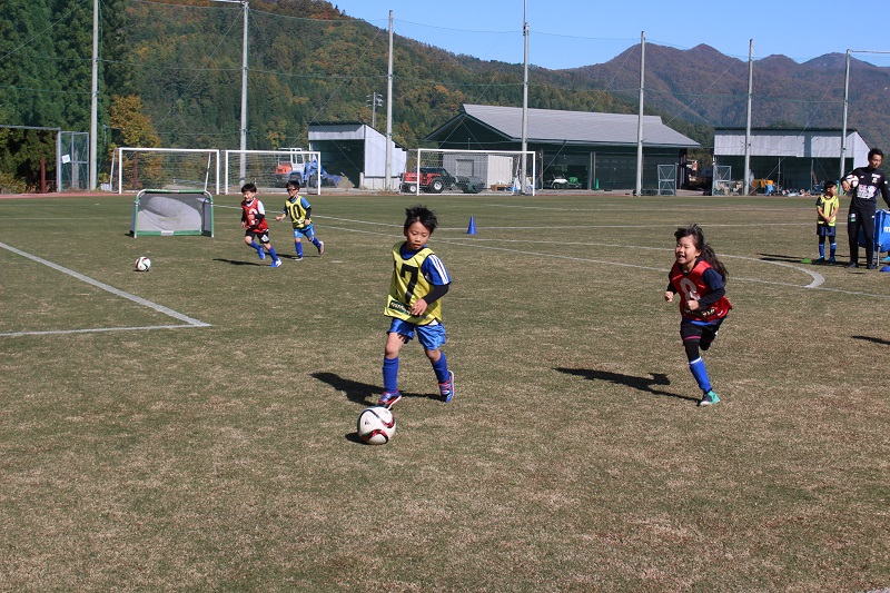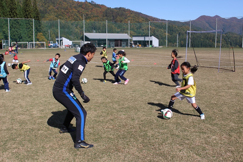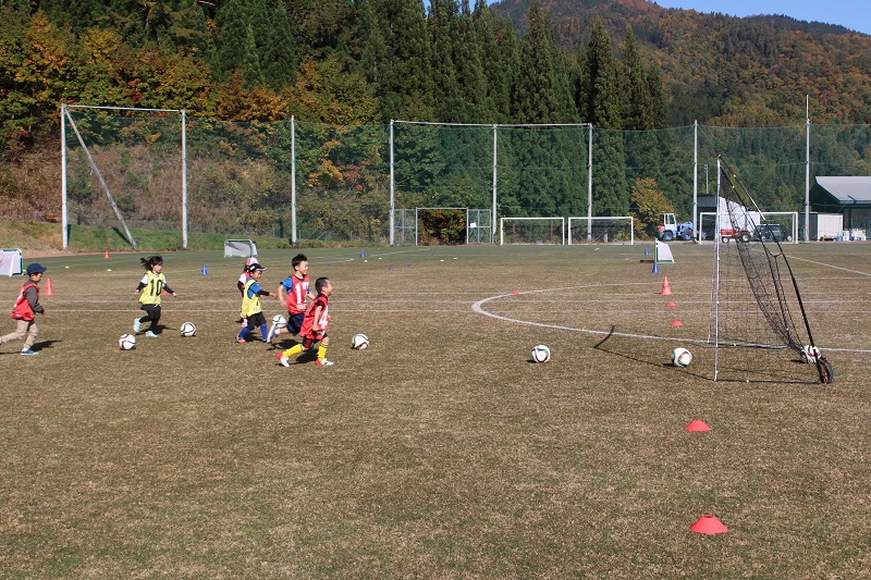 11月9日(土)飛騨市にある「飛騨古川ふれあい公園」にて、飛騨市主催のサッカー教室が開催されました。子ども達は芝生のピッチで元気にボールを追いかけました。