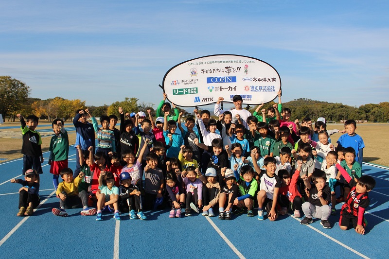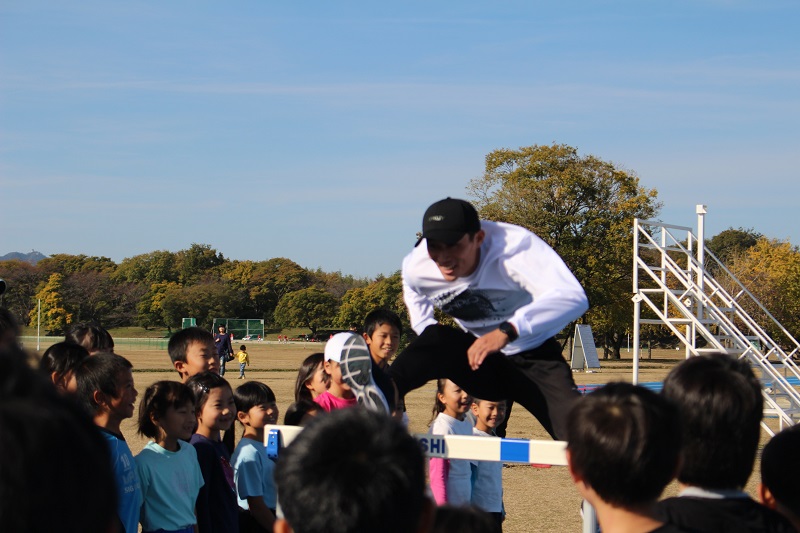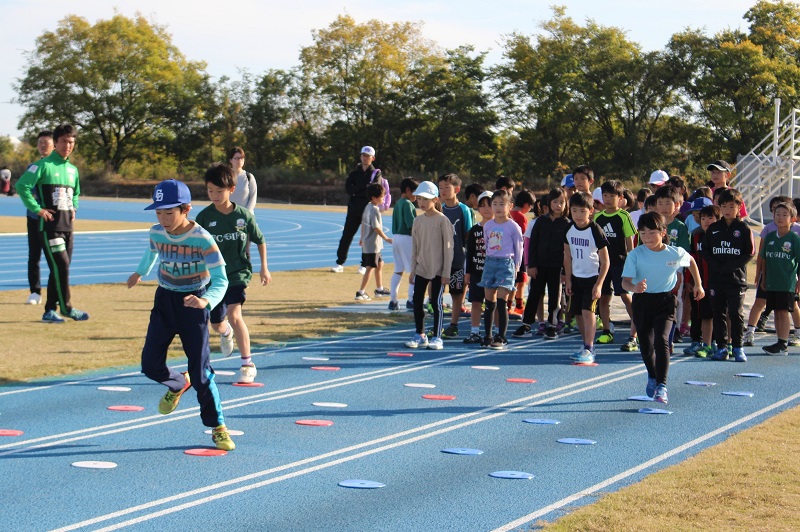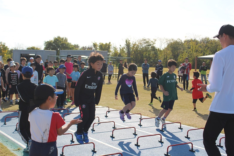 11月17日(日)各務原市にある各務原市総合運動公園陸上競技場にて、和戸 達哉 選手(陸上:紀の国わかやま国体110mH1位)をお迎えし、FC岐阜かけっこ教室を開催しました。