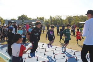 子ども達にとっては自分の身長や顔あたりまであるハードル(106.7㎝)を軽々と華麗に飛び越えていくハードル走はいつ観ても感動です!