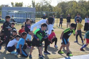 各務原市では昨年に引き続き2回目の開催となりました。サッカーに限らずスポーツに役に立つ「速くなるコツ」を学びました。