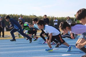 低学年と高学年に分けて競争しました。和戸選手のスピードに圧倒されながらも最後まで走り切りました。