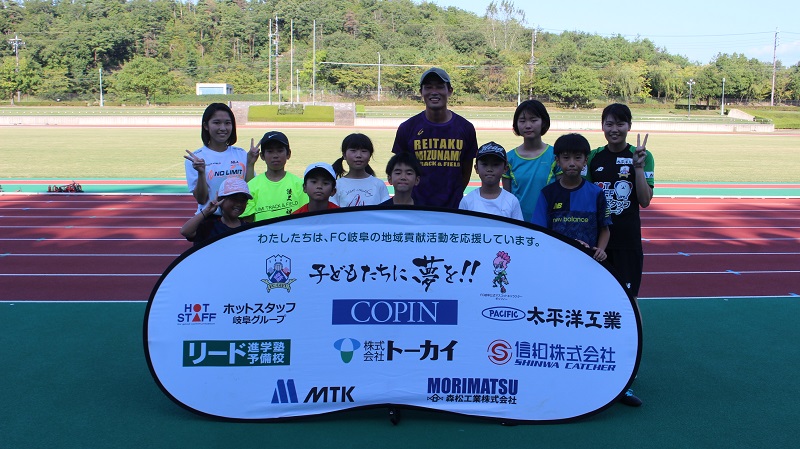 11月24日(日)土岐市にある土岐市総合活動センター若人の丘 陸上競技場にて、和戸 達哉 選手(陸上:紀の国わかやま国体110mH1位)をお迎えし、FC岐阜かけっこ教室を開催しました。