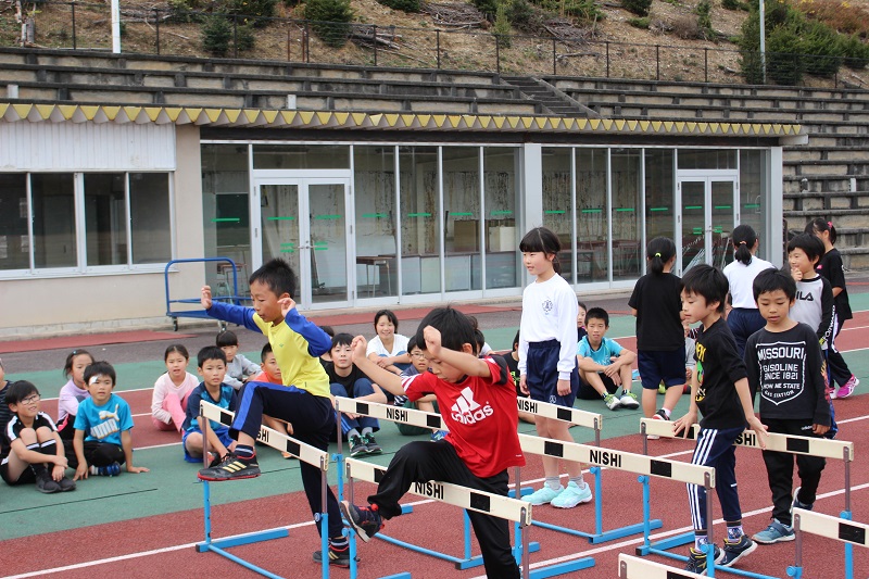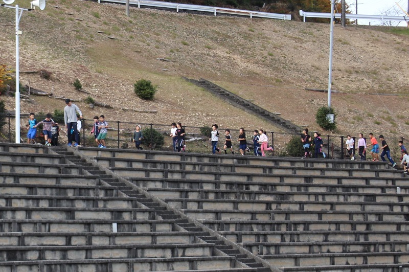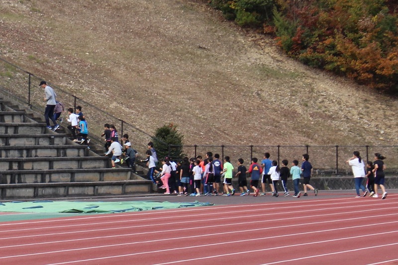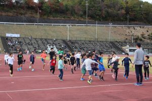 低学年と高学年に分かれて競争をしました。高学年では何人かが和戸選手に勝利!ハンデありとはいえ、勝つことは嬉しいですね!走り終わった後は達成感の笑顔で溢れていました。