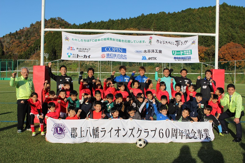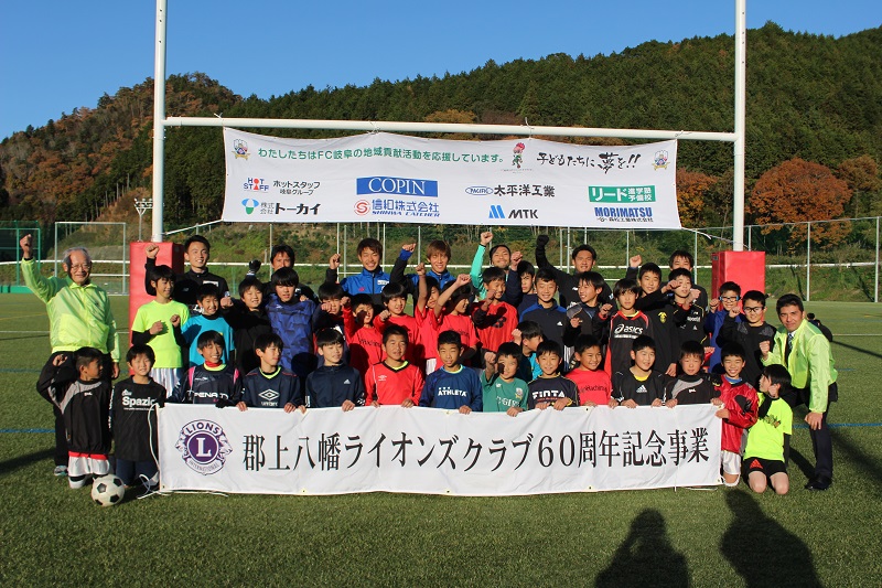 11月30日(土)郡上市にある「まん真ん中広場」にて、郡上八幡ライオンズクラブ主催のサッカー教室が60周年記念事業として開催されました。