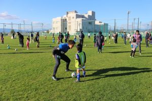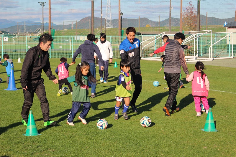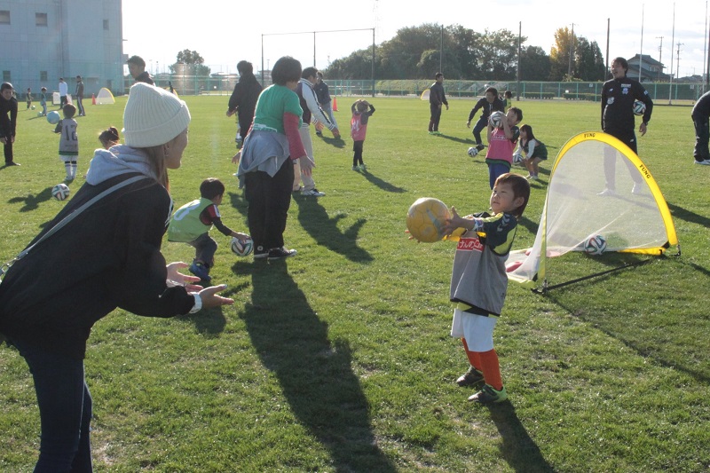 サッカー教室は、親子で協力しながら出来るメニューを中心に楽しく行いました。