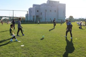 手つなぎドリブルやパスの練習もしました。