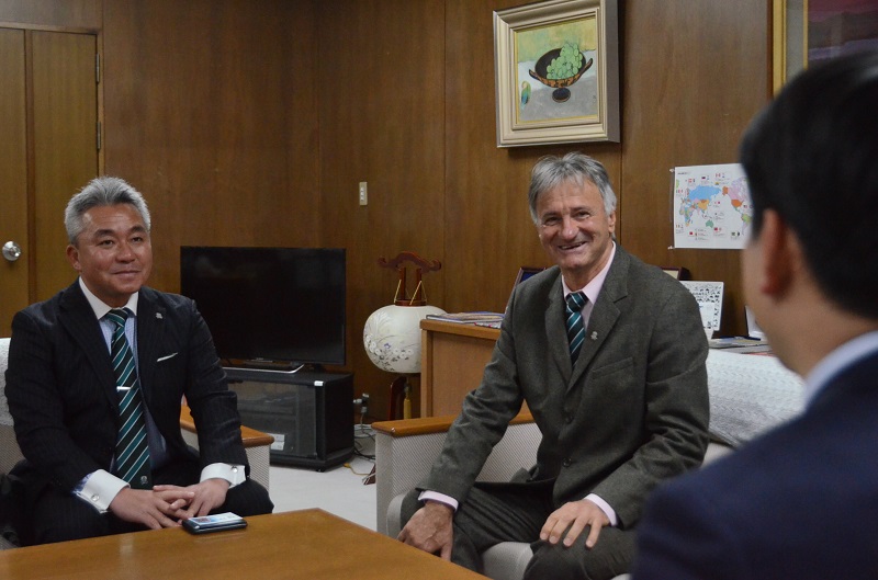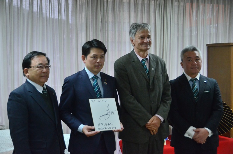新体制が発表され、2020シーズン開幕(3月7日(土)15時キックオフ、AC長野パルセイロ戦)を迎える にあたり、1月27日(月)岐阜市役所にて、宮田 博之 社長、ゼムノビッチ ズドラブコ監督、木村 哲昌 統括本部長が柴橋 正直 岐阜市長を表敬訪問させていただきました。