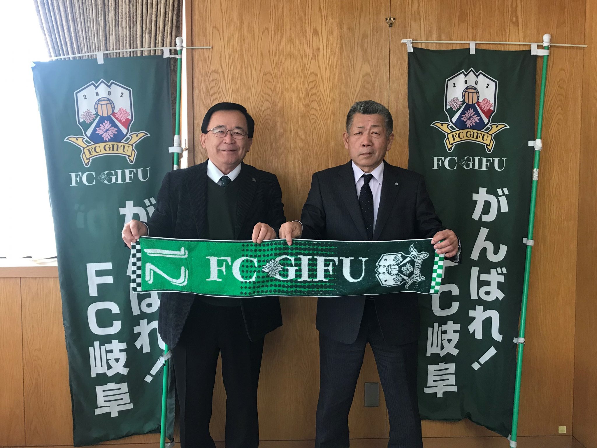 3月17日(火)坂祝町役場にて、FC岐阜 宮田 博之 社長が、柴山 佳也 坂祝町長を表敬訪問させて頂きました。