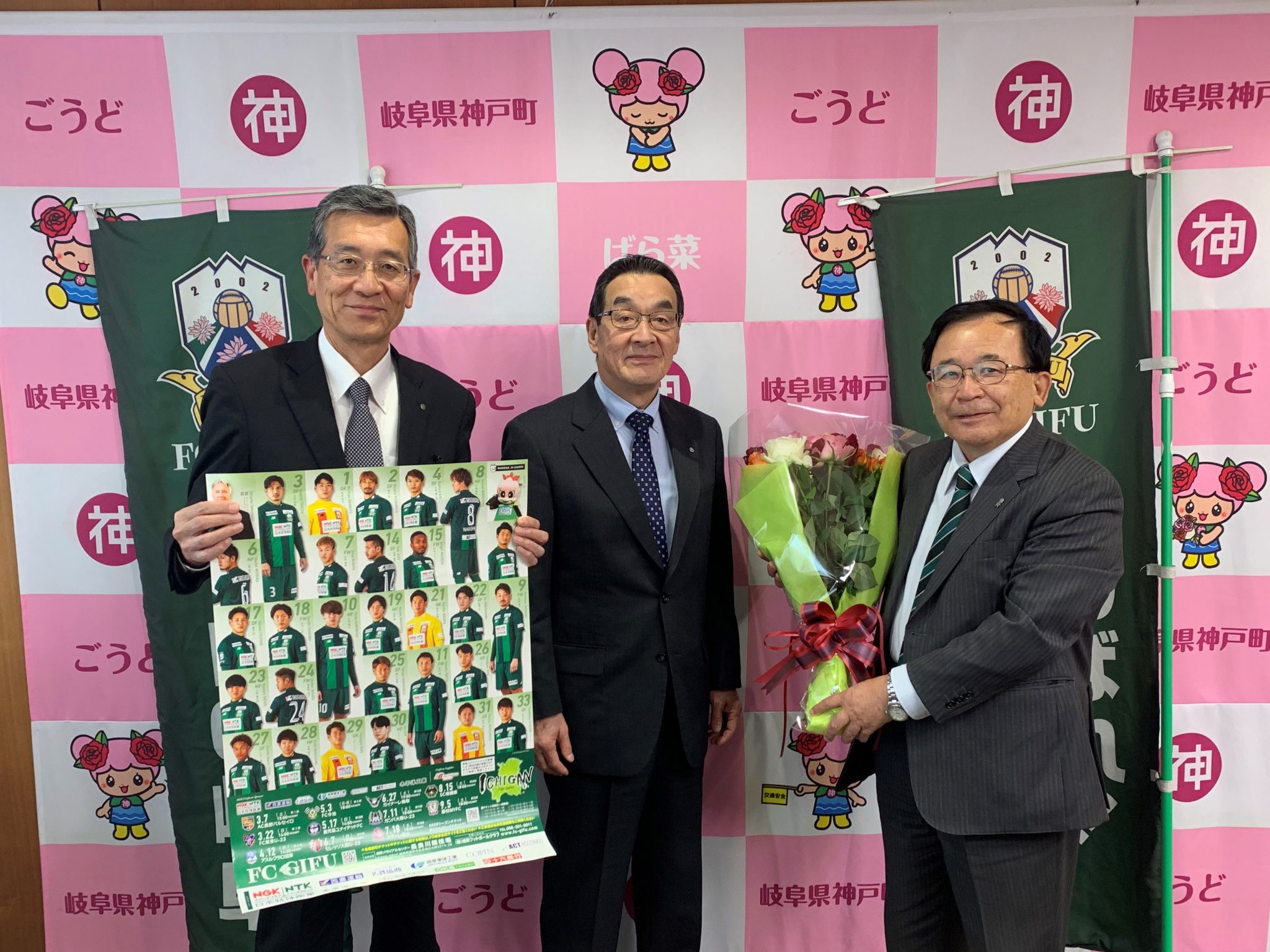 また、神戸町ホームタウンデーでの様々なイベントやプレゼントへの御礼をお伝えするとともに、神戸町民対象の「感動を共にチケット」や「夢パス」などのご案内をさせていただき、試合に臨む選手をスタジアムで後押し頂けますようお願いいたしました。