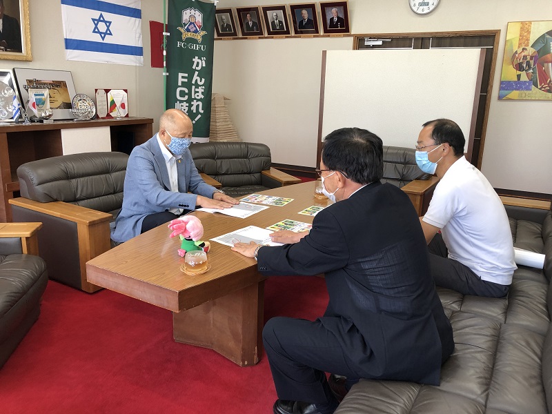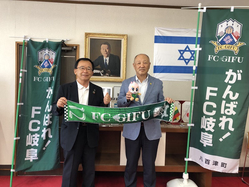 8月30日(日)ブラウブリッツ秋田戦 の「八百津町ホームタウンデー」開催にあたり、8月14日(金)八百津町役場にて、宮田 博之 社長が、金子 政則 八百津町長を表敬訪問させて頂きました。