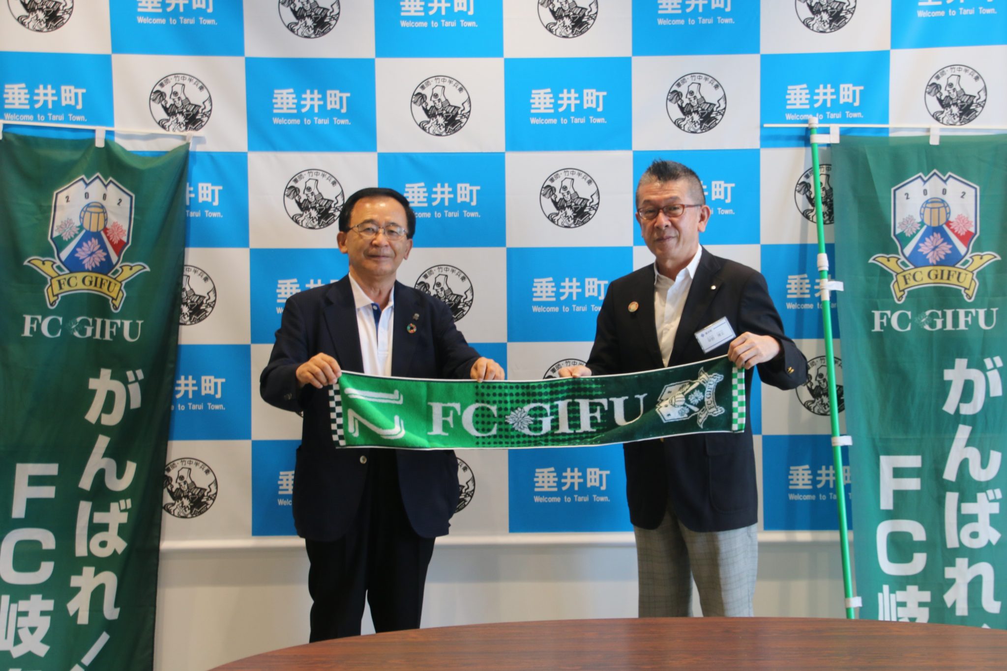 9月19日(土)AC長野パルセイロ戦 の「垂井町ホームタウンデー」開催にあたり、8月27日(木)垂井町役場にて、宮田 博之 社長が、早野 博文 垂井町長を表敬訪問させて頂きました。